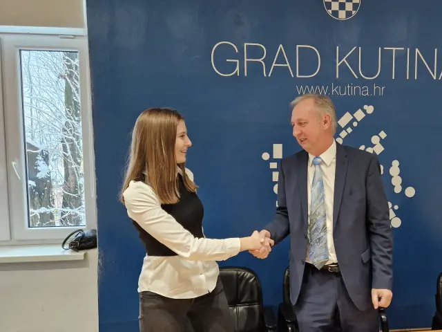 Gradonačelnik Grada Kutine Zlatko Babić i zamjenica gradonačelnika Ivana Grdić na rukometnom treningu u Dječjem vrtiću Kutina