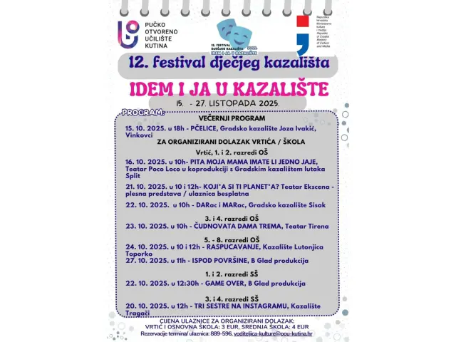 NAJAVA - 12. Festival dječjeg kazališta „Idem i ja u kazalište“ donosi bogat program za djecu i mlade